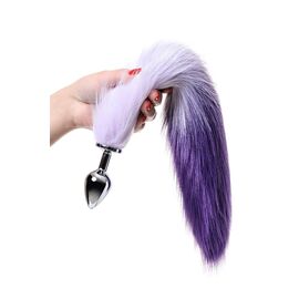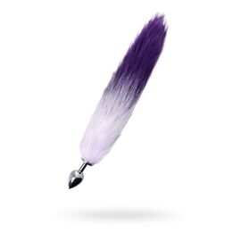 Анальная втулка Metal by TOYFA с бело-фиолетовым хвостом, металл, серебряная, 45 см, Ø 3,3 см