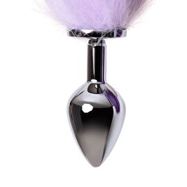 Анальная втулка Metal by TOYFA с бело-фиолетовым хвостом, металл, серебряная, 45 см, Ø 2,7 см