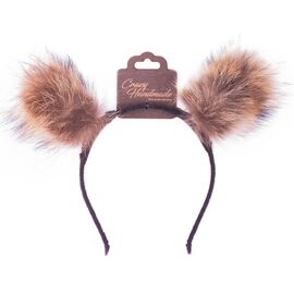 Ушки из натурального меха енота фиксируются на голове с помощью гибкого и удобного ободка. С помощью этого аксессуара легко создать образ дикого зверька или милого домашнего питомца. Доставляется в фирменной упаковке в виде брендированной деревянной подложки. Материал ушек: натуральный мех енота...