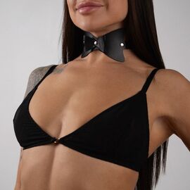 Однослойный чокер из натуральной кожи. Декорирован трехслойным кожаным элементом в виде галстука-бабочки, прочно закрепленным на чокере. Доставляется в фирменной упаковке в виде брендированной деревянной подложки. Общая длина изделия: 40 см Ширина основы изделия: 3 см Универсальный обхват (на...