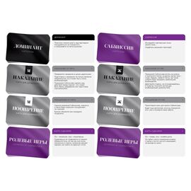 «Во власти страсти» – это серия эротических игр для двоих, главная особенность которой – большое количество ролевых игр и сценариев проведения романтического вечера. Серия включает себя карточные игры, наборы с аксессуарами, наборы кубиков и т.д. Эта игра поможет воплотить даже самые смелые...