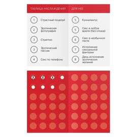 Эротическая игра для двоих С этой игрой ваши домашние дела станут намного горячее и пикантнее. Вы сможете раскрыться с новой стороны и доставить друг другу невероятное удовольствие. Внутри найдёте карты с откровенными заданиями и таблицу наслаждений, которые доведут вас до экстаза. Подарите друг...