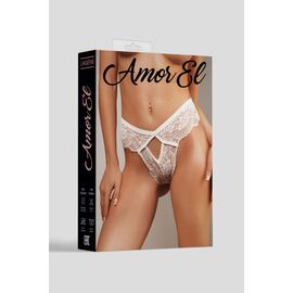 Белые кружевные трусики-танго с соблазнительными вырезами на передней и задней части. Эта модель трусиков добавит вашему образу нежность и романтичность. Коллекция: Amor El Цвет: белый Доступные размеры: S Материал: 90% полиэстер, 10% эластан.