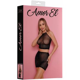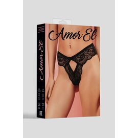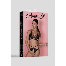 Сексуальный черный комплект белья с дизайнерскими вставками и трусиками с доступом. Трусики идут с подвязками для чулок. Коллекция: Amor El Цвет: черный Размер: L/XL (48-50) Материал: 90% полиэстер, 10% эластан