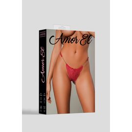 Кружевные стринги с цепочками и регуляторами на резинках. Коллекция: Amor El Цвет: красный Размер: L (46-48) Материал: 90% полиэстер, 10% эластан, металл