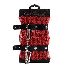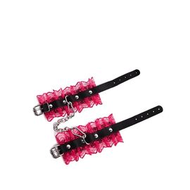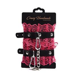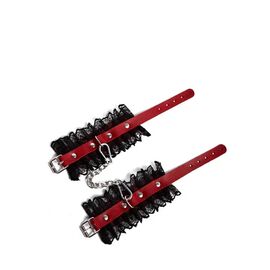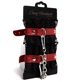 Оригинальные оковы для любителей нестандартных эротических забав. Оковы с красным кружевом, выполненные из натуральной кожи черного цвета. Они надежно фиксируются пряжками и ремнями, позволяющими выбрать нужный размер.Оковы снабжены карабинами, благодаря которым изделия можно соединять между...