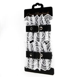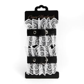 Оригинальные оковы для любителей нестандартных эротических забав. Оковы с белым кружевом, выполненные из натуральной кожи черного цвета. Они надежно фиксируются пряжками и ремнями, позволяющими выбрать нужный размер.Оковы снабжены карабинами, благодаря которым изделия можно соединять между собой....