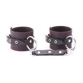 Оковы состоят из одного слоя натуральной кожи, одного ремешка и стального кольца. По краям прошиты декоративной строчкой красного цвета. В комплекте соединительный элемент из кожи с двумя карабинами. Универсальные, подойдут и для использования в любовных играх, и в качестве аксессуара для...