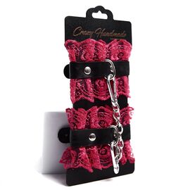 Оригинальные оковы для любителей нестандартных эротических забав. Оковы с кружевом в цвете фуксия, выполненные из натуральной кожи черного цвета. Они надежно фиксируются пряжками и ремнями, позволяющими выбрать нужный размер.Оковы снабжены карабинами, благодаря которым изделия можно соединять...
