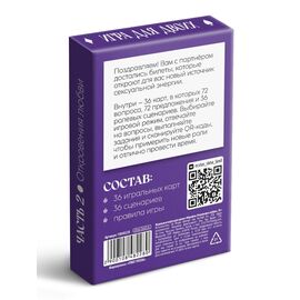 Чувственная игра для двоих Хотите подарить своей второй половинке истинное наслаждение и порадовать её приятным сюрпризом? Тогда эта игра точно для вас! Открывайте карточки, изучайте способы сделать приятно друг другу, а затем закрепите эффект фантастическими секс-позами. Этот вечер принадлежит...
