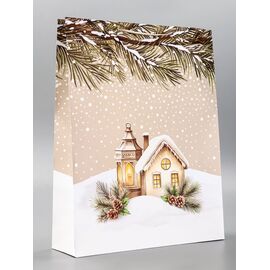 Пакет подарочный новогодний ламинированный, «Новогодний домик», 33×10×42.5 см