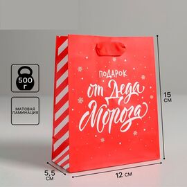 Пакет подарочный новогодний ламинированный «Подарок от Деда Мороза», S 12×15×5.5 см
