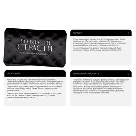 Окажитесь во власти страсти «Во власти страсти» – это серия эротических игр для двоих, главная особенность которой – большое количество ролевых игр и сценариев проведения романтического вечера. Серия включает себя карточные игры, наборы с аксессуарами, наборы кубиков и т.д. Мечтаете порадовать...