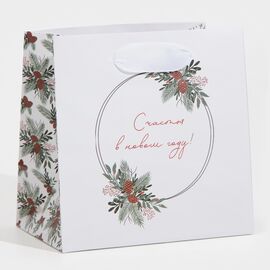 Пакет подарочный новогодний ламинированный квадратный «Зима», 14×14×9 см