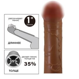 Усильте эрекцию с этой реалистичной насадкой из мягкого TPR. Эластичная, она подходит для любого размера, плотно облегая и удерживая кровь. Помогает достичь долгой и мощной эрекции. Снижает чувствительность, продлевая удовольствие. Так же насадка придает члену дополнительный объем и новую форму,...
