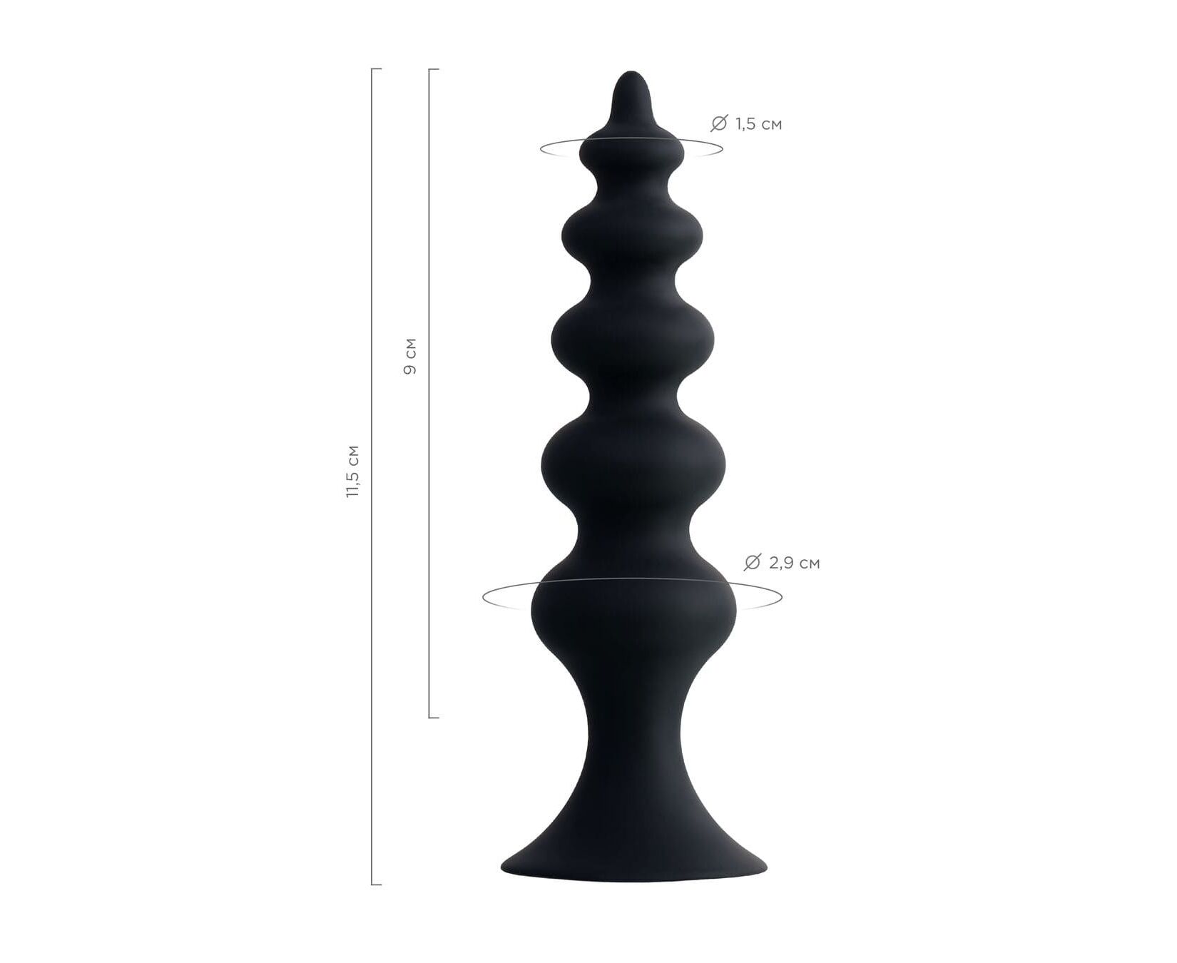 Анальная втулка POPO Pleasure by TOYFA Indi, водонепроницаемая, силикон, черная, 11,5 см, Ø 2,9 см