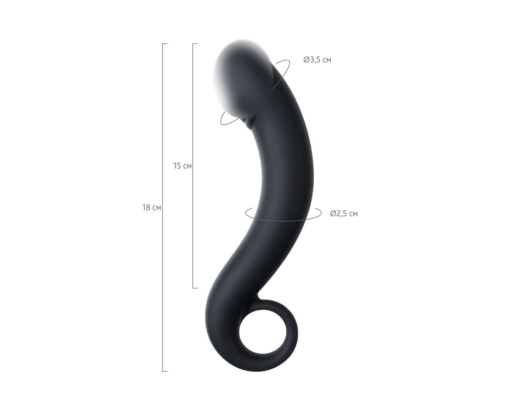 Это секс-игрушка для анальных игр и наслаждений. Изогнутая форма с имитацией головки пениса позволяет во-первых комфортно вводить ее в анус, а во-вторых является отличным способом воздействовать на мужскую точку P, вызывая усиленную волну оргазма. Ручка-кольцо дает возможность легко регулировать степень проникновения и уверенность в том, что игрушка не погрузится полностью внутрь.