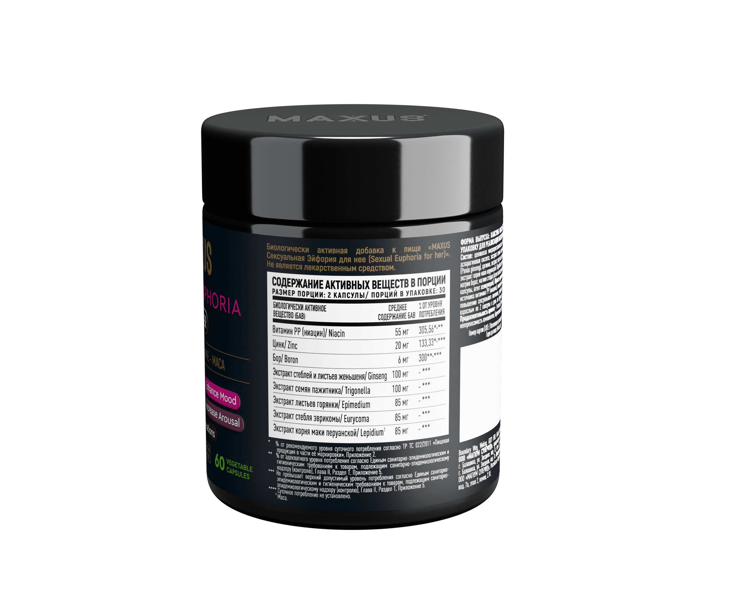 БАД MAXUS Сексуальная Эйфория для неё, Sexual Euphoria for her, 60 капсул