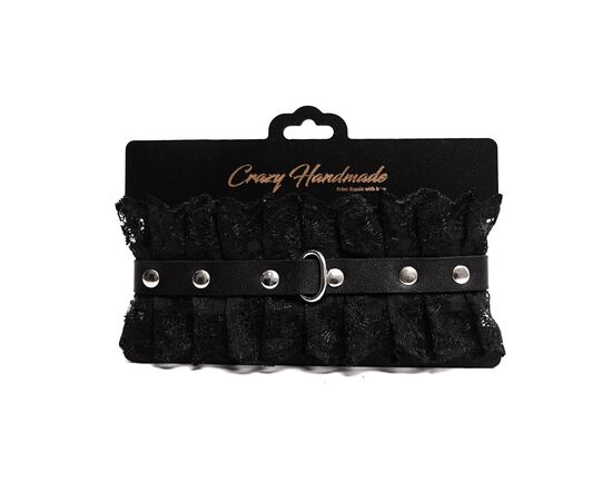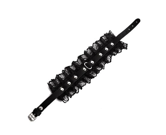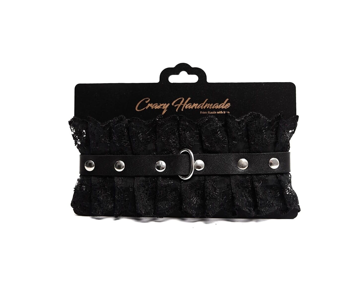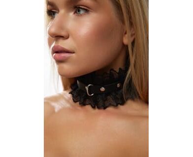 Элегантный чокер из натуральной кожи черного цвета, декорирован черным кружевом. Для регулировки длины кляпа на ремешке имеется 5 отверстий. Нежная натуральная кожа очень комфортна в использовании.