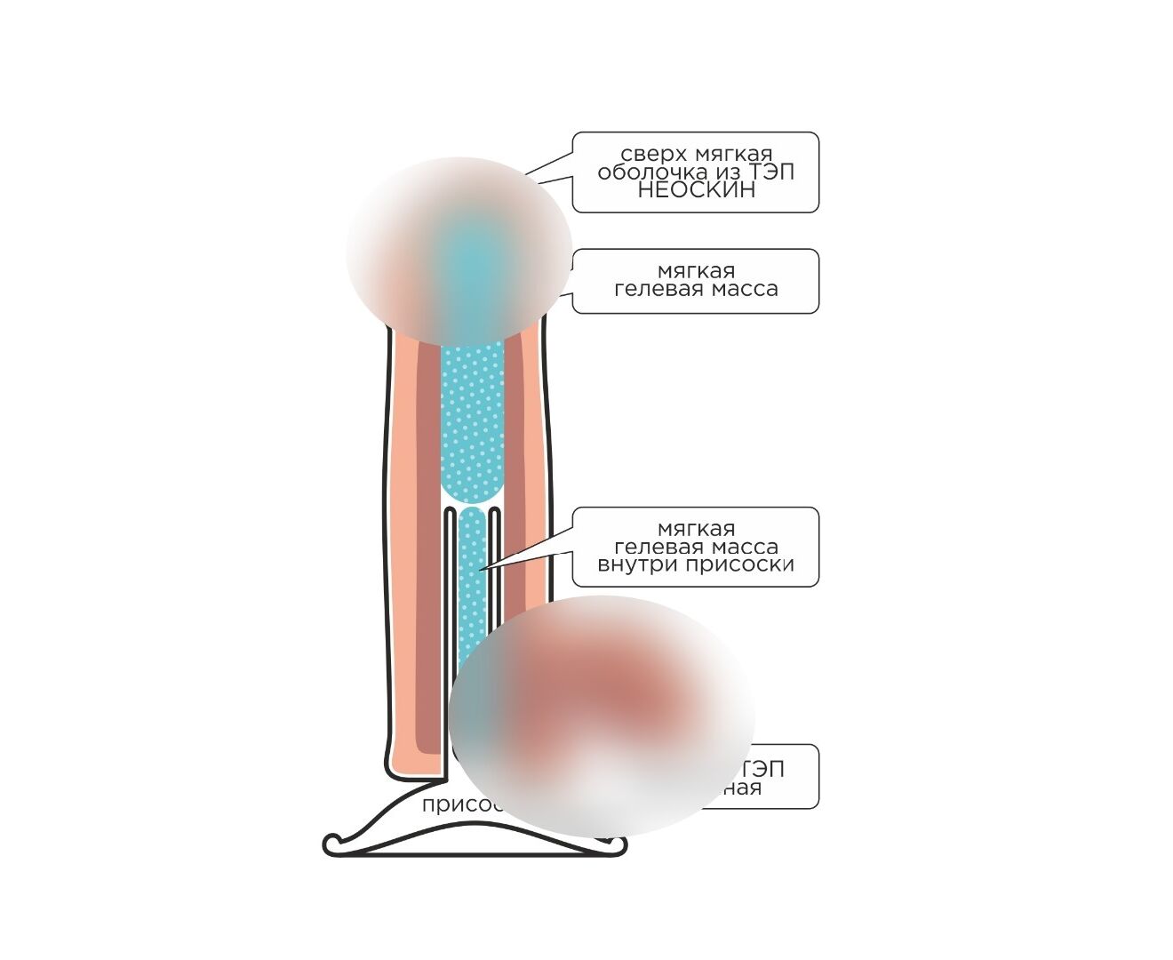 постепенным нарастанием упругости к присоске. Изготовлено с использованием технологий протезирования.