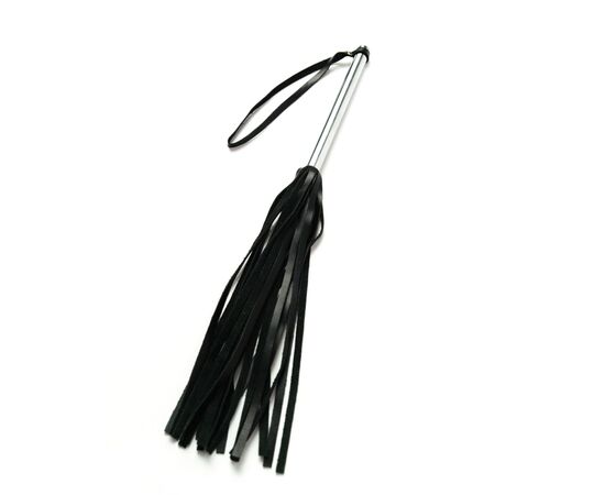 Флоггер из черной кожи с хромированной ручкой