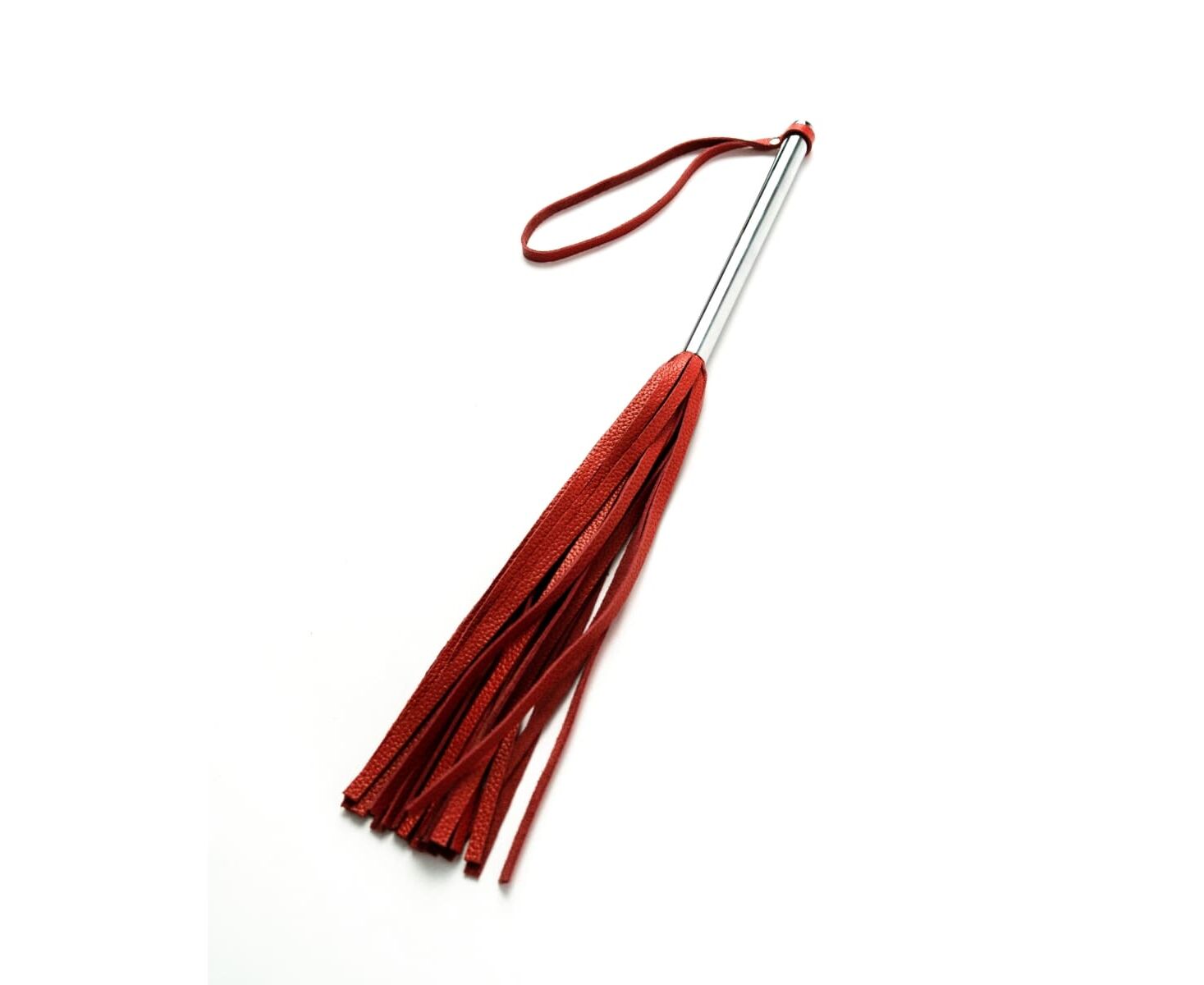 Флоггер состоит из стальной хромированной рукояти и хлыстов из натуральной кожи красного цвета. Ручка-петля на конце изделия служит для дополнительной фиксации флоггера на запястье и предотвращает его выскальзывание из руки во время любовных игр.