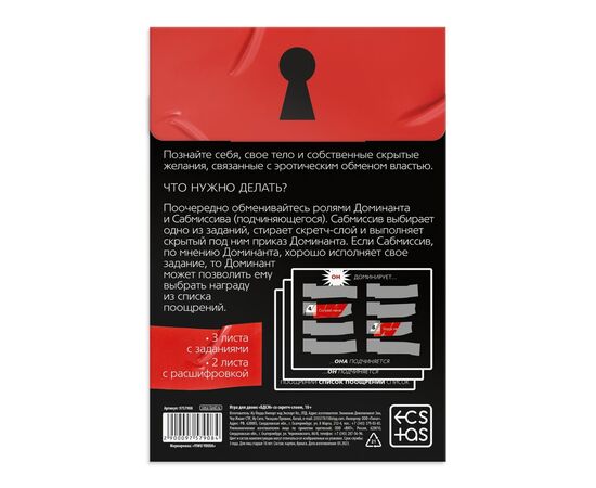 Обменивайтесь ролями, стирайте скретч-слои, подчиняйтесь или приказывайте. Помните, если хорошо исполнять задания, то вас будет ждать долгожданная награда.