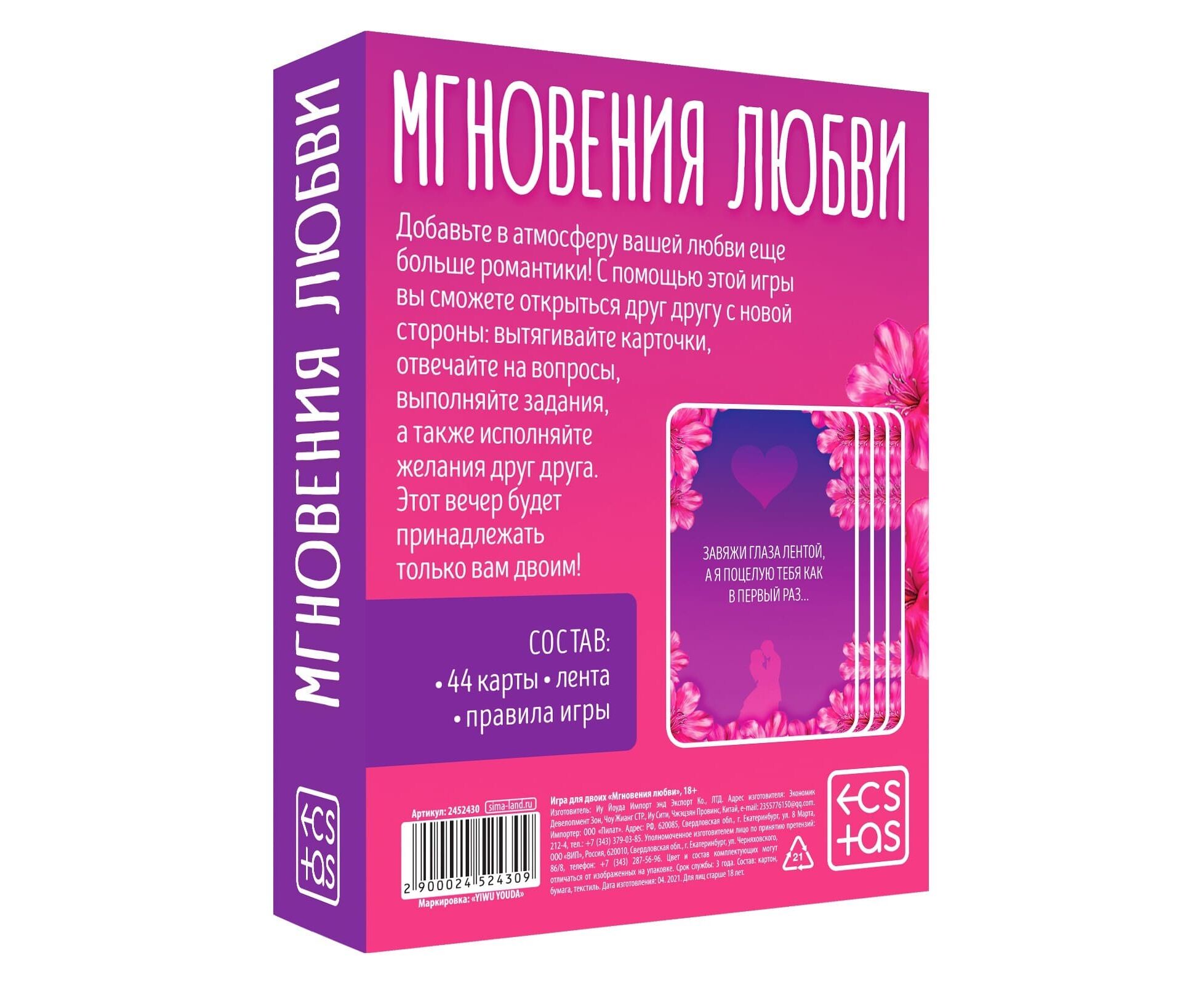 Игра для пар «Мгновения любви», 44 карты, лента, 18+