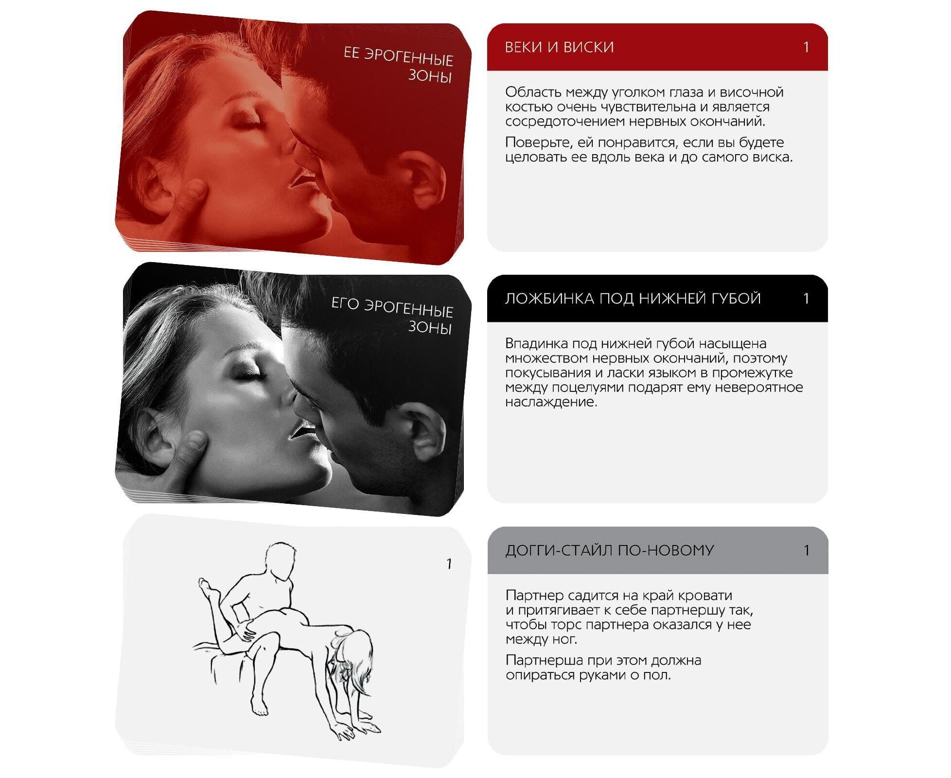 Определите, с чего вы начнёте игру: с изучения её или его эрогенных зон. Вытяните карточку и воспроизводите то, что там указано.