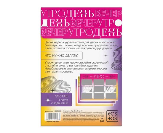 Игра для пар «Утро. День. Вечер» со скретч-слоем, 3 листа, 18+