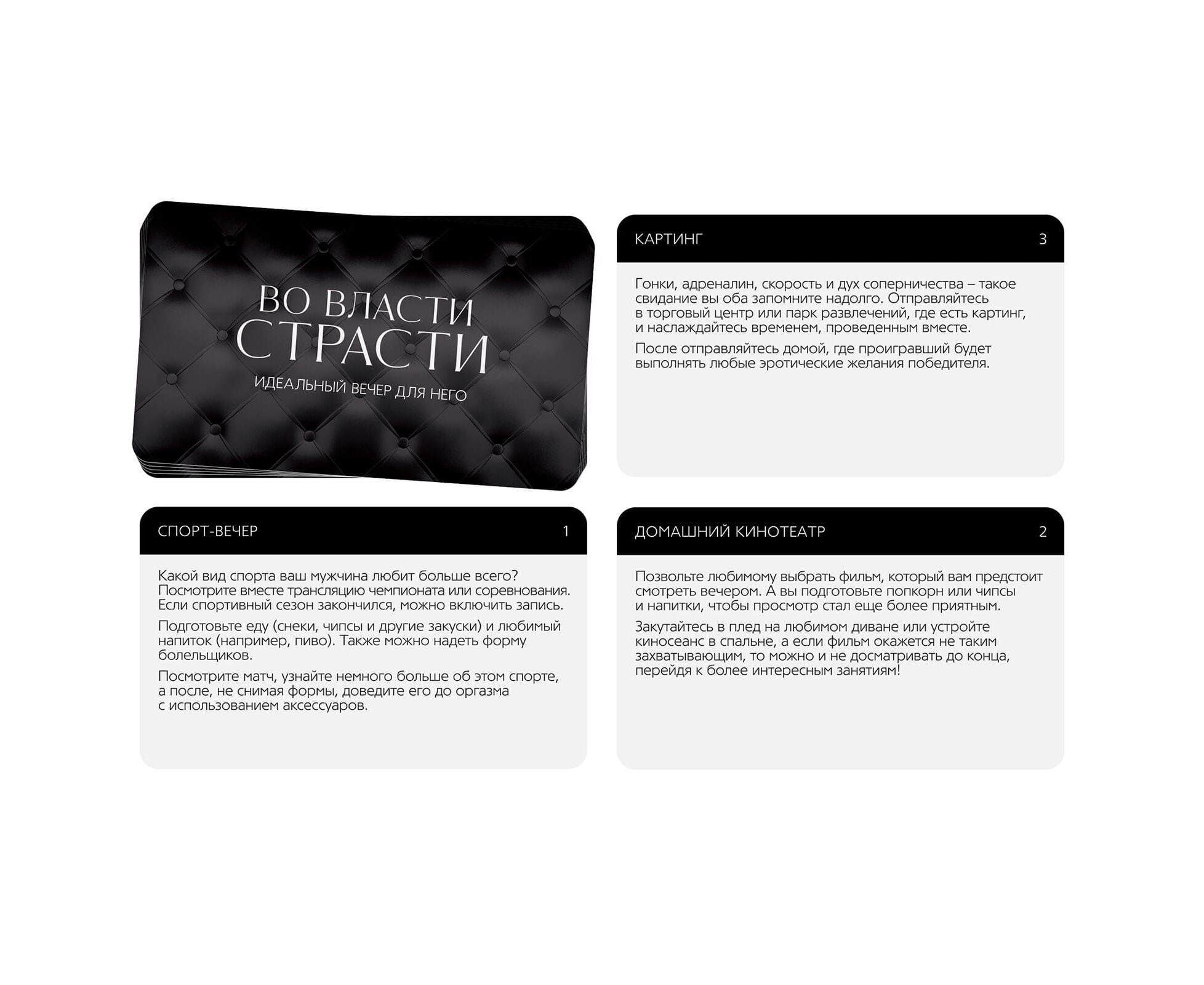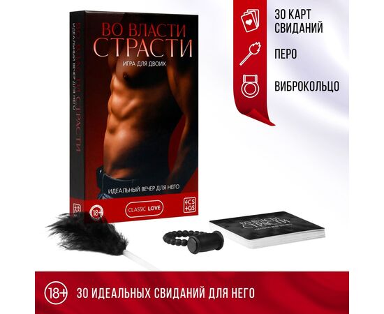 Игра для пар «Во власти страсти. Идеальный вечер для него», 3 в 1 (30 карт, перо, виброкольцо), 18+
