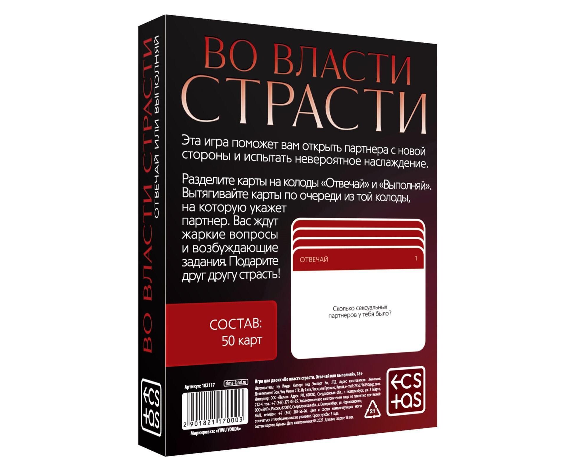 Игра для пар «Во власти страсти. Отвечай или выполняй», 50 карт, 18+