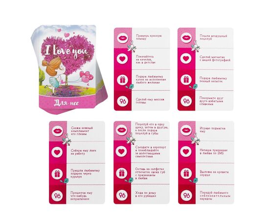 Разделите карточки на колоды для него и для неё. Выберите вариант игры (3 дня или дольше). В течение этого времени вам предстоит выполнять задания параллельно с вашими повседневными делами. Только представьте: вы приходите домой, а там вас ждёт романтический ужин при свечах. Что же это? Вас хотят запутать или это было задание?