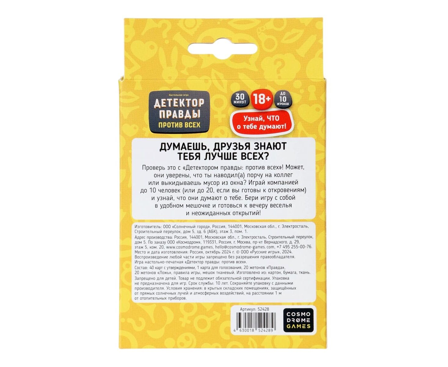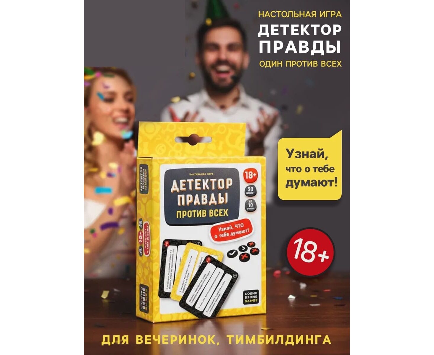 Когда компания собралась, а разговоров не хватает. Настольная пати‑игра «Детектор правды: против компании» — это честные вопросы, остроумные ответы и тот самый нерв 'один против всех', который разогревает общение без лишней неловкости.