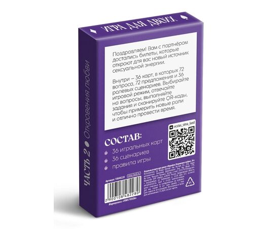 Забудьте о скучных вечерах вдвоем – теперь каждый ваш совместный досуг может стать незабываемым приключением! «Марафон. Откровения любви» – это уникальная игра, которая поможет вам углубить эмоциональную связь, разнообразить совместный досуг и сделать ваши отношения более искренними и открытыми.