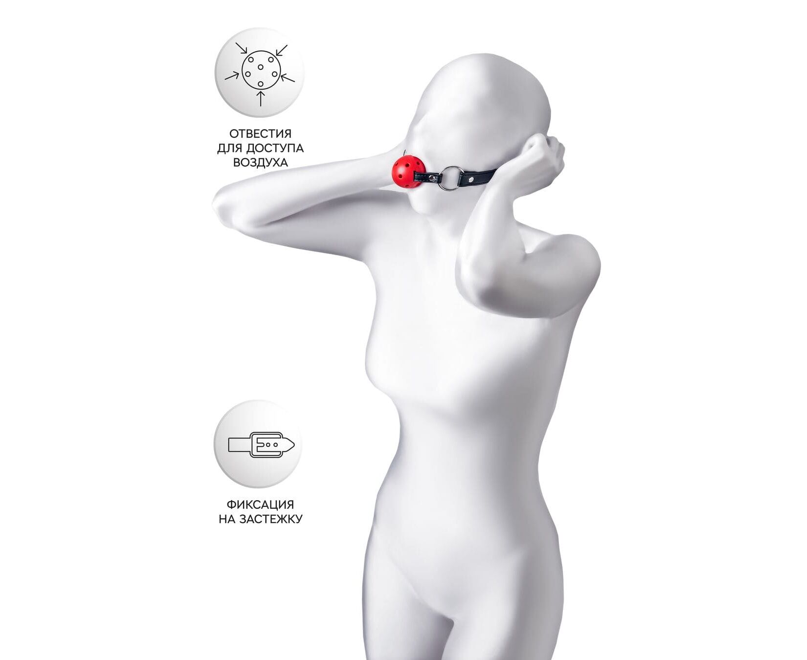 Специальные отверстия для воздуха делают ношение кляпа безопасным и комфортным.