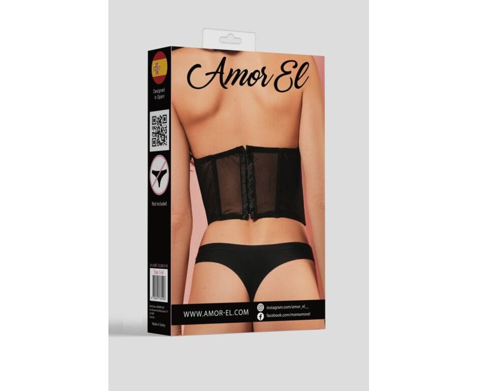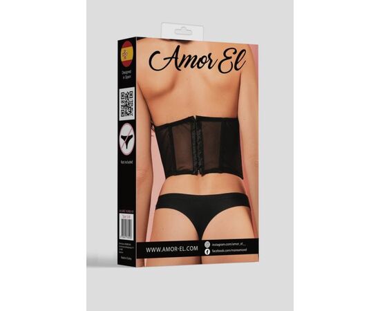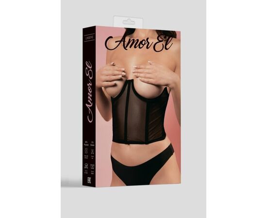 Корсет с косточками выполнен из полупрозрачной сеточки. Вставки вдоль корсета визуально делают силует стройнее. Открытая чашка у корсета дает возможность комбинировать его с повседневными топами и блузами, а также даёт возможность надеть пестисы и добавить еще больше сексуальности и игривости в кокетливый образ.