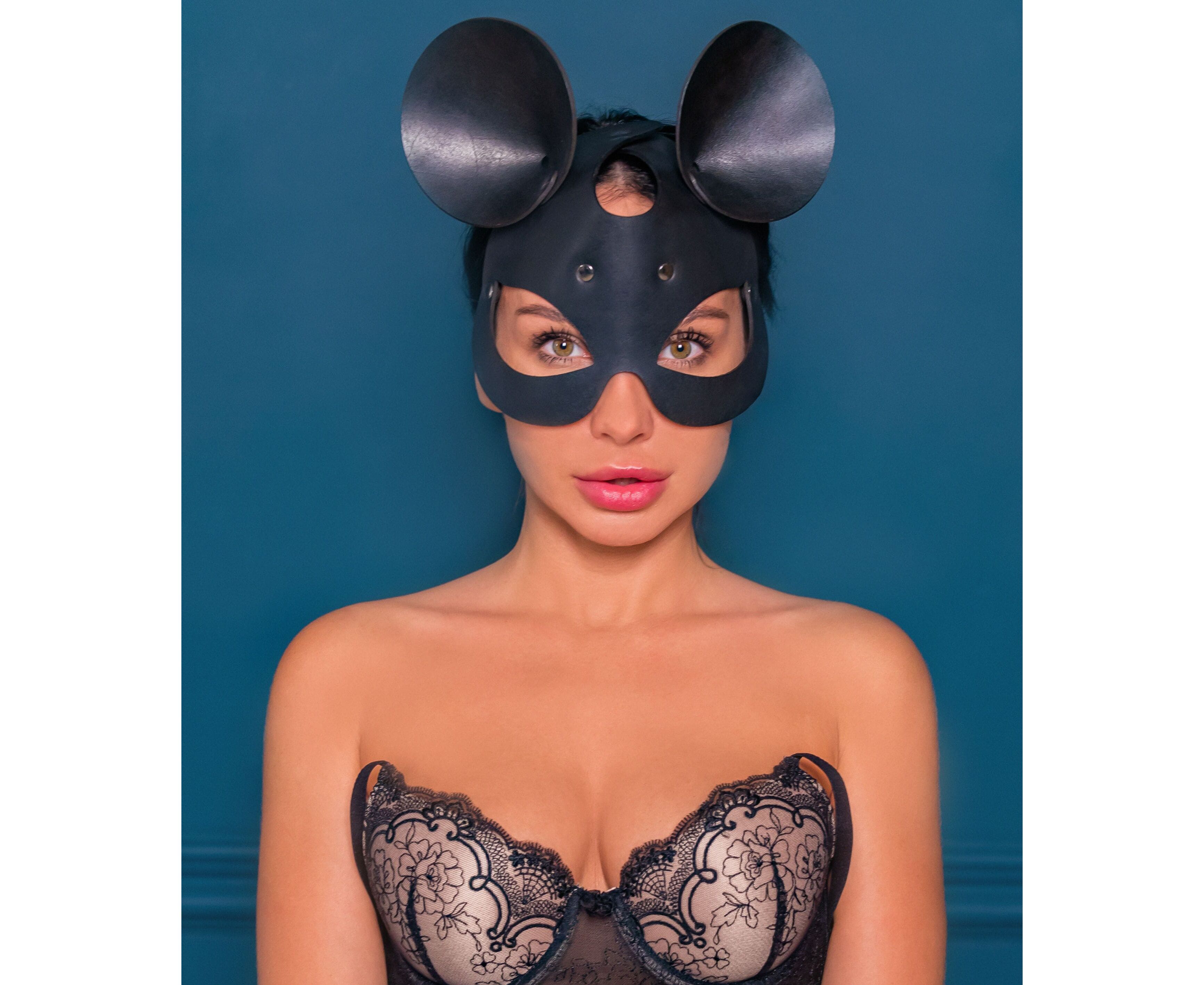 Эффектная однослойная открытая маска с ушками мышки из натуральной кожи. За счёт хорошо продуманного дизайна маска прекрасно сидит на голове и задаёт настроение всему образу. Аксессуар выполнен с использованием фурнитуры высокого качества, что позволяет говорить о прочности и долговечности данного изделия. Маска хорошо фиксируется на любой обхват головы благодаря упругой широкой резинке.