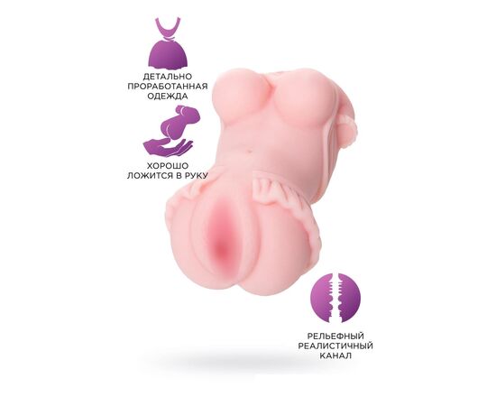 Мастурбатор удобно ложится и удерживается в руке, благодаря повторениям изгибов молодого женского тела. Сочные формы - грудь, талия и половые губы призывно томятся в ожидании твоего внимания. Малые половые губы выделяются на фоне игрушки насыщенным розовым цветом, это непременно порадует твой взгляд и поможет обогатить фантазию новыми желаниями.