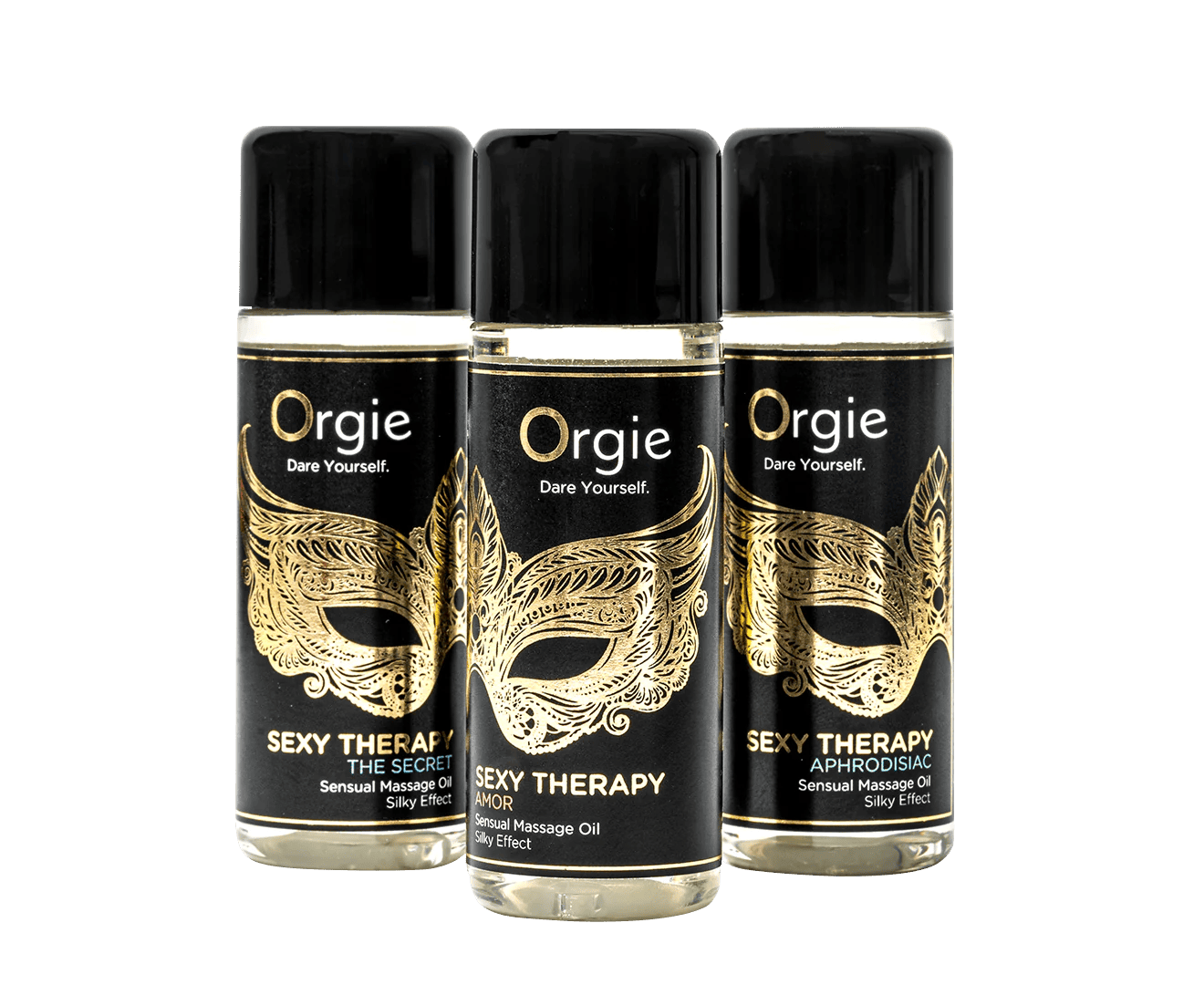 Набор массажных масел Sexy Therapy Sensual Massage португальского бренда Orgie. Эта великолепная коллекция из трех миниатюр по 30мл, с потрясающими ароматами.