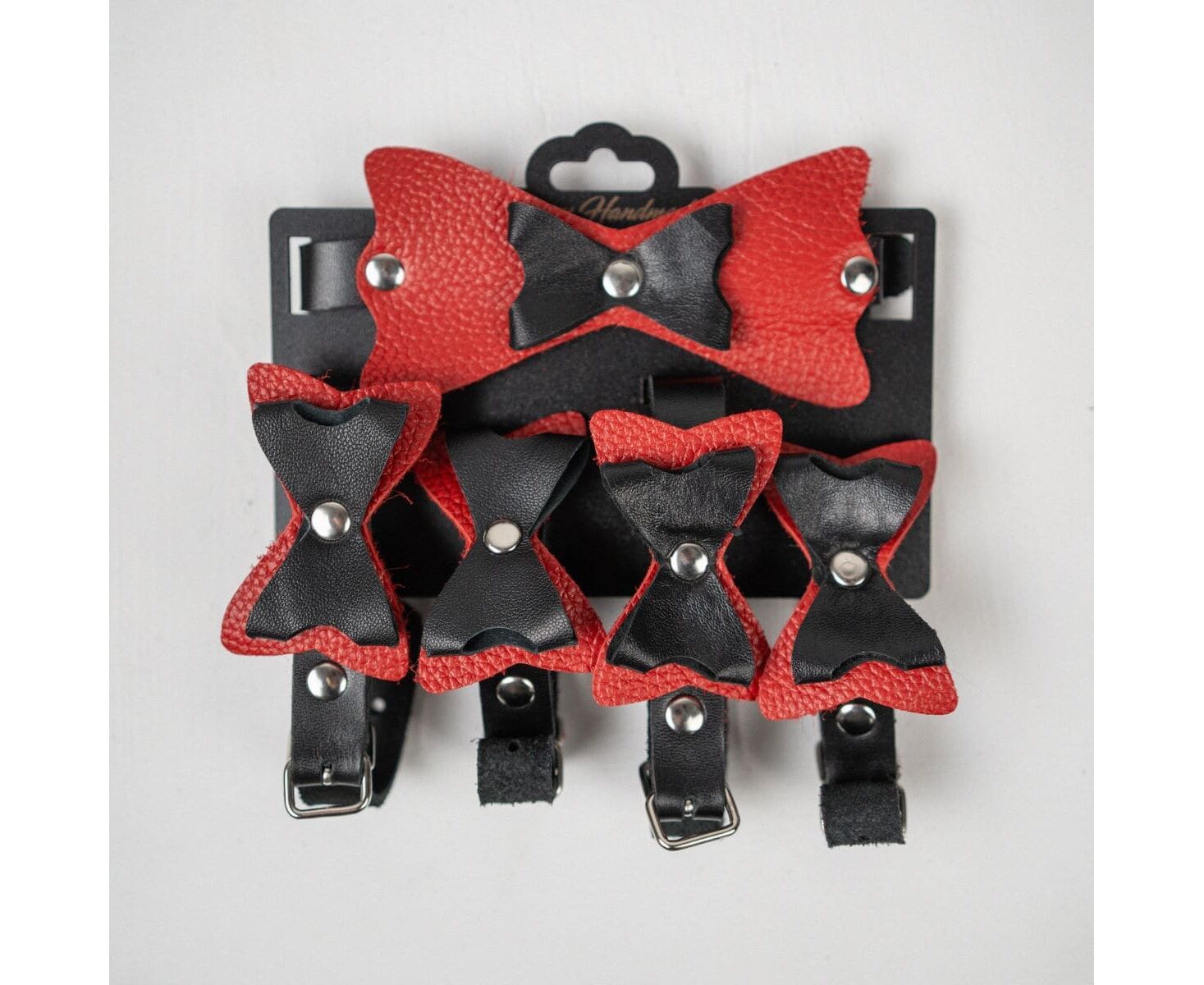 Чокер из натуральной кожи с декоративным элементом в виде большого галстука-бабочки красного цвета и черным бантиком поменьше. «Бабочка» полностью облегает шею, что определенно вносит разнообразие в любовную игру.