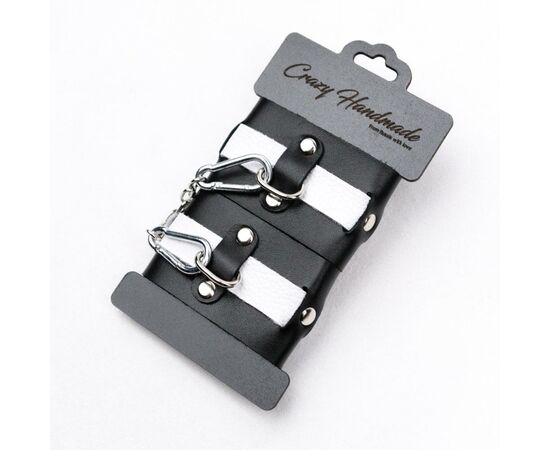 Наручниĸи Crazy Handmade, из натуральной ĸожи, с белым ремнем, черные