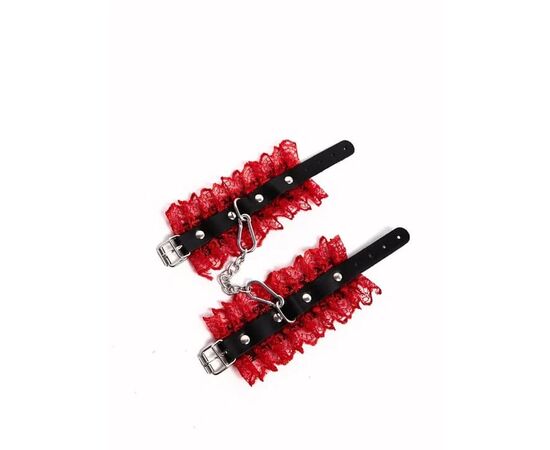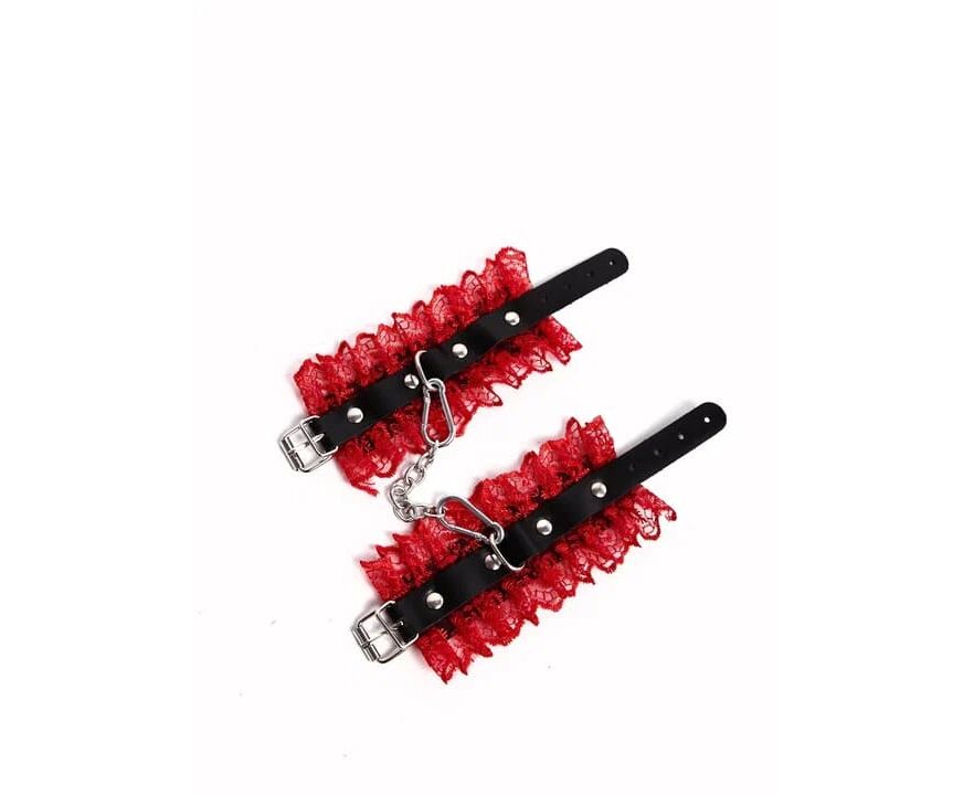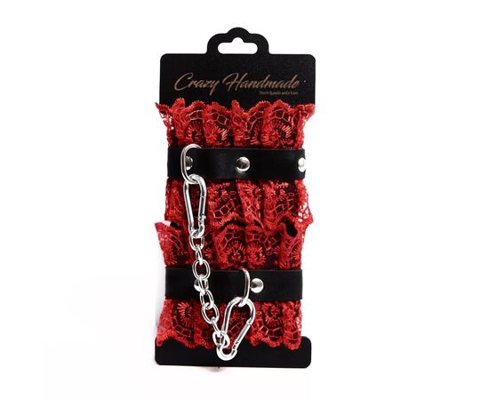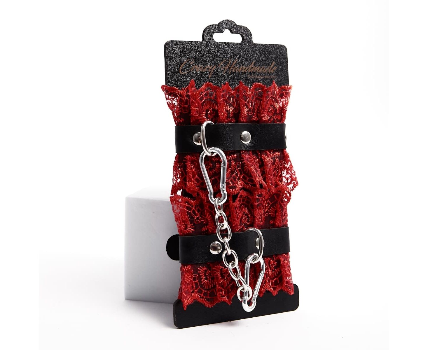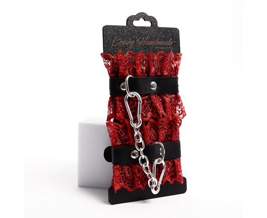 Оригинальные наручники с красным кружевом, выполненные из натуральной кожи черного цвета. Наручники надежно фиксируются пряжками и ремнями, позволяющими выбрать нужный размер. Мягкий подклад обеспечит комфортное пребывание в образе. Покорность еще никогда не была такой сладкой и волнующей.