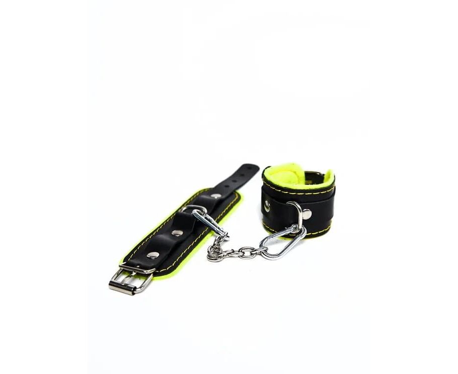 Наличие колец и карабинов, соединенных между собой металлической цепочкой, позволяет использовать изделие как раздельно – аксессуар-манжеты, так и как наручники для фиксации. К широким металлическим кольцам также можно присоединить и другие аксессуары при помощи карабинов.