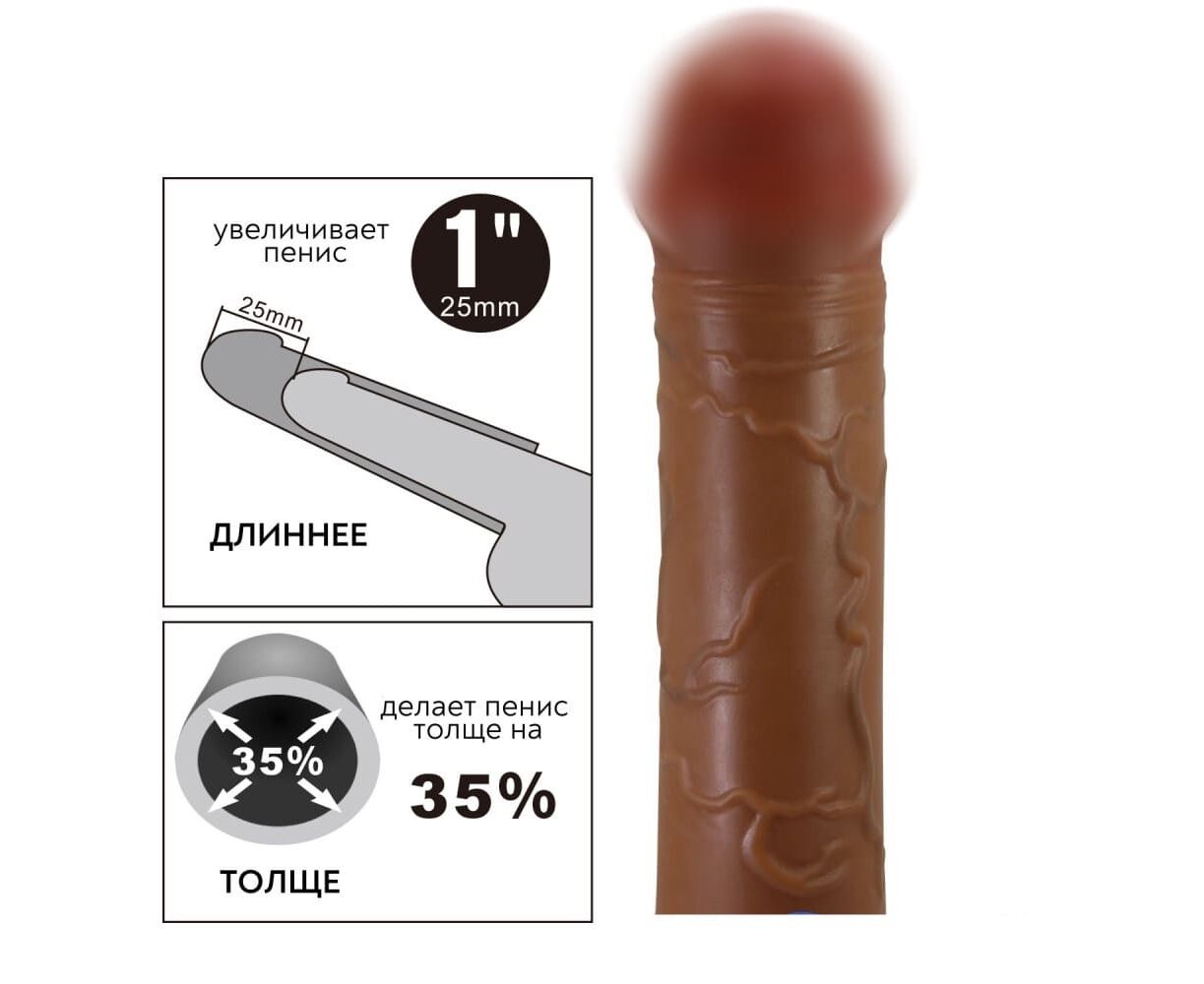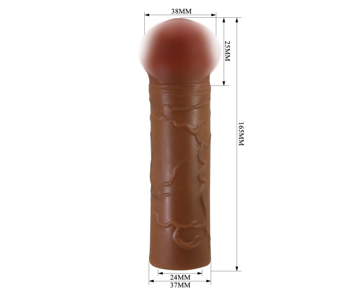 Эта насадка на пенис выполнена из материала TPR и придаёт вашему пенису дополнительную толщину и длину. Внутренний канал хорошо тянется и усиливает внутреннюю стимуляцию благодаря рельефу. На основании насадки находится кольцо для яичек, которое помогает удерживать устройство на месте и способствует продлению эрекции.