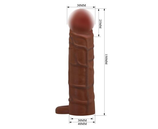 Эта насадка на пенис выполнена из материала TPR и придаёт вашему пенису дополнительную толщину и длину. Внутренний канал хорошо тянется и усиливает внутреннюю стимуляцию благодаря рельефу. На основании насадки находится кольцо для яичек, которое помогает удерживать устройство на месте и способствует продлению эрекции.