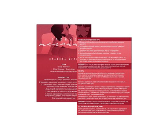 Настольная игра для пар «Тайные желания» - не просто игра для двоих, а идеальный способ узнать, какие желания вы хотели бы осуществить, но так никогда и не поговорили об этом.