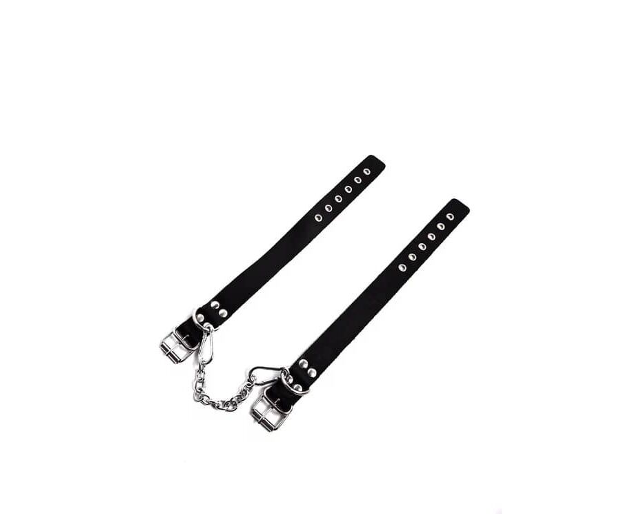 Прочные фиксаторы на ноги выполнены из натуральной кожи черного цвета. Оковы имеют надежное крепление, благодаря использованию в производстве качественной металлической фурнитуры. Размер универсальный регулируется с помощью ремешков. Оковы имеют лаконичный дизайн и станут вашим спутником в самых страстных эротических играх.