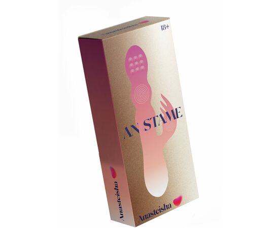 AN Stamen - оригинальный вибратор-кролик из премиального силикона с двумя независимыми моторами. Первый мотор находится на головке основного ствола и обеспечивает 7 режимов стимуляции бусинами, второй мотор обеспечивает интенсивную вибрацию на вагинальном и клиторальном отростках игрушки в 10-ти разных режимах.