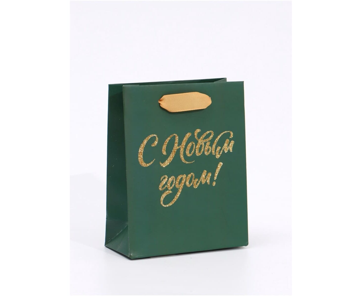 Пакет подарочный новогодний ламинированный «С Новым годом», глиттер, S 12×15×5.5 см